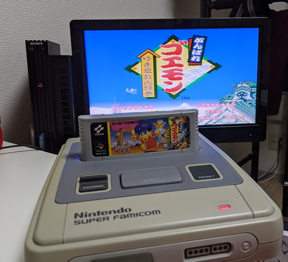 現状、お家でやってるのはスーファミメインです。がんばれゴエモン ゆき姫救出絵巻をやってます。まだ仲間になる前なのでサスケが敵で出るんですけど、強すぎてブチ切れます。ゴエモンでイライラしたときは