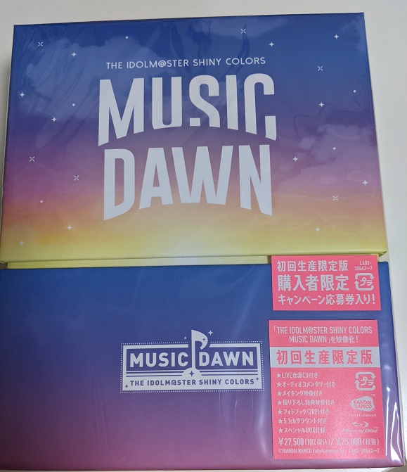 悩みに悩みました。でも、初回生産特典が欲しくて購入してしまいました! 「MUSIC DAWN」day1, day2のブルーレイです! 定価は27,500円! それが、アマゾンだと6000円割引で