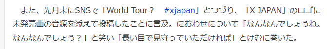 さて、今日の書きたいことはもちろん、「話し合わない?」とSNSで問い掛けたYOSHIKI氏のことです。誰に話しかけたのか? もちろんToshlです。ここ最近、Xに関する呟きが増えています。チャンスが巡ってきたのか、よっぽどXをやりたいのか