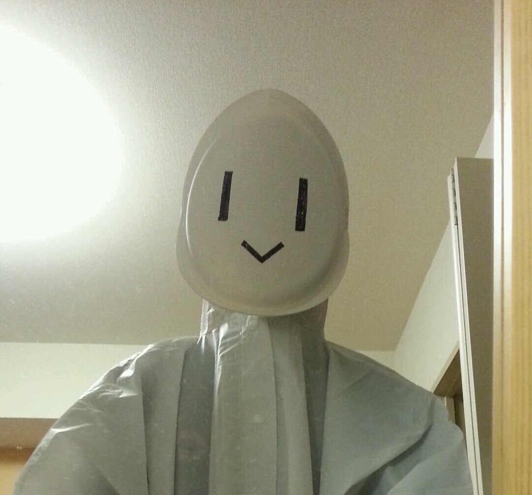 あとは、ポンチョ被って、お面をつければてるてる坊主です。